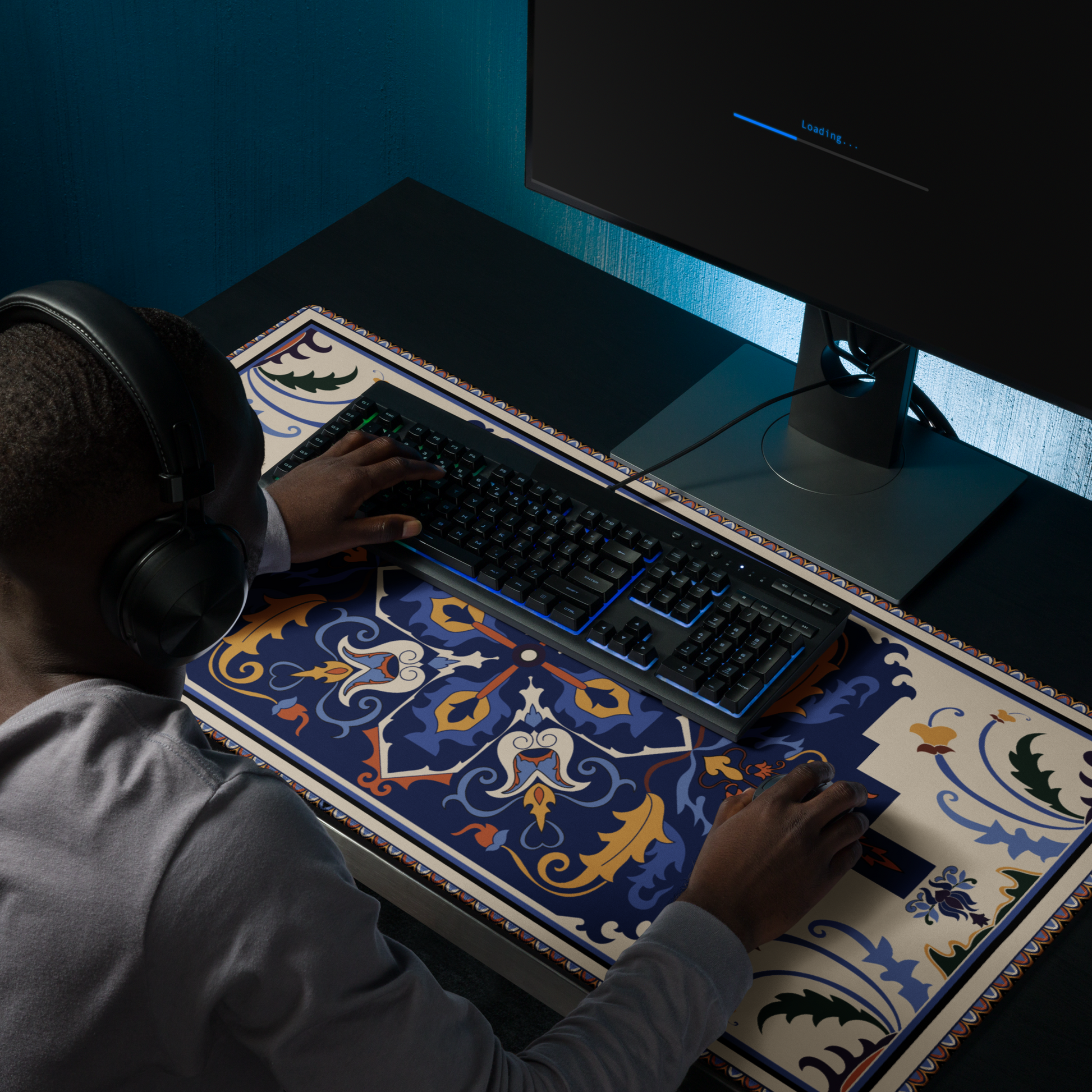 Take your gaming to the next level with our XL Gaming Desk Mat featuring a light colorful rug design. Crafted with precision and designed for the most immersive gaming experiences, this oversized mousepad is the perfect addition to your gaming setup.