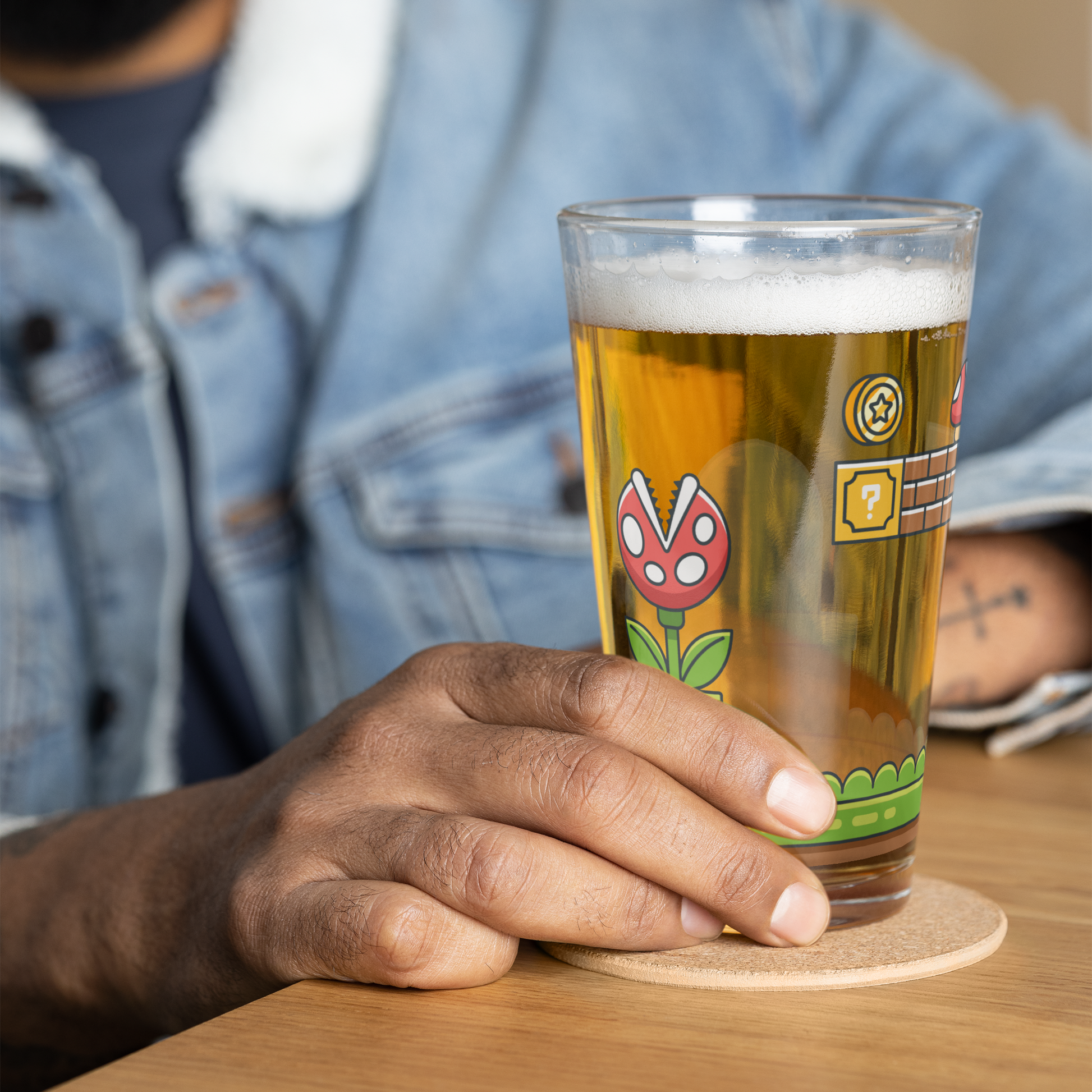 Take a step into the gaming past with this high-quality 16oz pint glass. Featuring a nostalgic gaming world design, this premium glass is ready for any gamer to toast a victory or enjoy a sip while gaming. Durable and dishwasher safe, our pint glasses are made to last the rigors of everyday use while adding style to your gaming lifestyle.